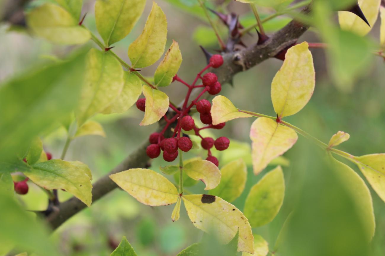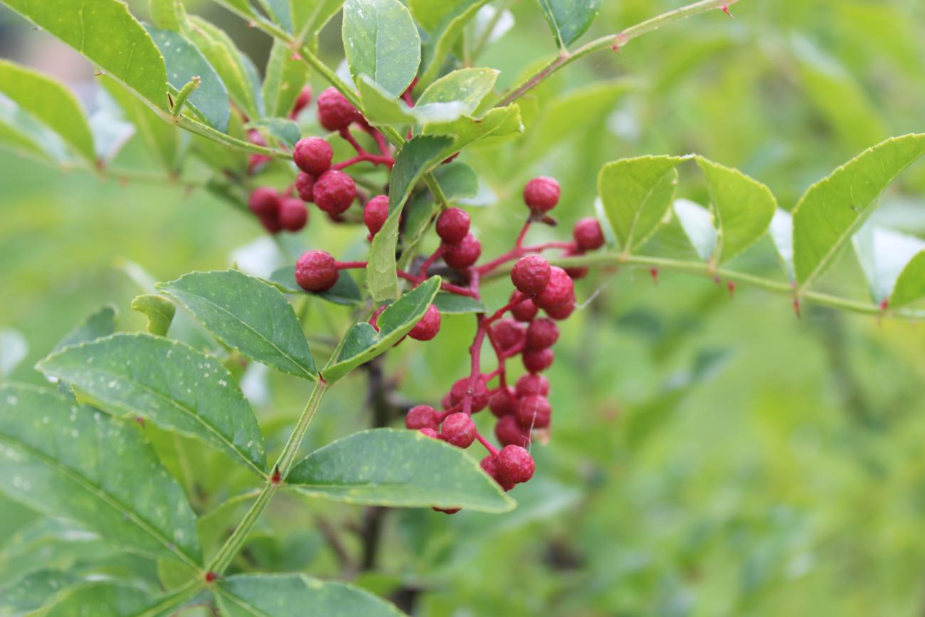 Bei uns völlig winterharter, aus Asien stammender Strauch. Die roten Früchte sind pfeffrig scharf und lassen sich als Gewürz verwenden. Die ebenfalls sehr aromatischen Blätter können ähnlich wie Lorbeerblätter verwendet werden. Selbstfruchtende, stecklingsvermehrte Auslese.