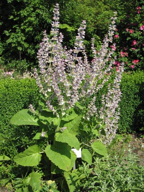 Zweijährig. Eine große Blattrosette bildet im zweiten Jahr einen beeindruckenden, verzweigten Blütenstand aus. Blütenfarbe weiß - rosa. Heil- und Küchenpflanze mit angenehm balsamischem Duft. Auch als Räuchersalbei verwendbar.